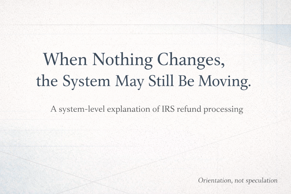If you’re in the middle of the refund process and finding yourself checking statuses, rereading letters, or trying to interpret silence, this guide is designed to give you context rather than instructions. It explains how IRS refund processing actually moves behind the scenes, what common signals do and do not mean, and why long pauses are often structural rather than personal. The goal is not to accelerate the system or provoke action, but to restore orientation — so you can stop guessing, stop spiraling, and understand where you are without turning every delay into a story.